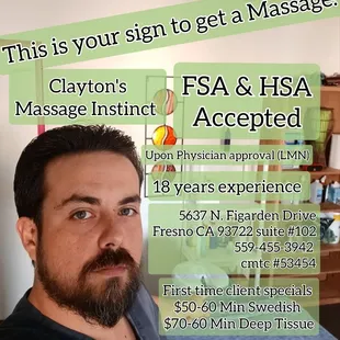 UPDATE and still in 2023; when we visit family and friends or pass through Fresno. We make it a point to schedule an appointment with Clayton for an amazing and relaxing massage. There's soft music, dim lighting while you receive the luxurious and calming massage.