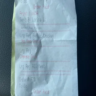 Receipt dose say garlic chicken