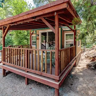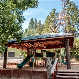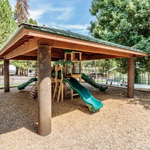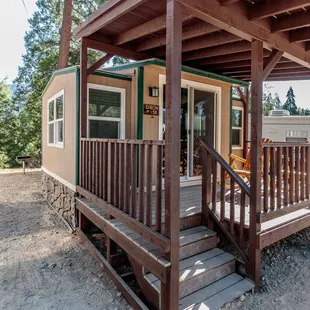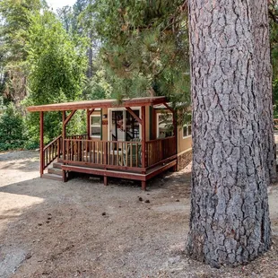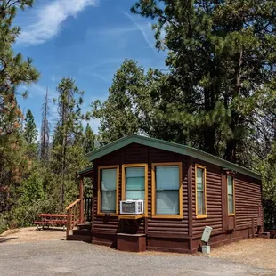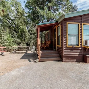 Okay RV resort with cabins near Bass Lake. Location is great, but most spots are lacking shade, fire pits or barbecues. They do have a playground, dog parks restaurant and a shaved ice truck was on site during our stay. They're also about 1/2 mile away from the pines resort and boat rentals.Booking was very easy and when I wanted to add an extra day all I had to do was call. Friendly staff and when we arrived after hours our info was conveniently available on the billboard.Our spot was however more of a 2 star and that's if I close one eye and tilt my head. For $99 a night it was quite lacking compared to other locations. It was semi-rock covered dirt, small and very difficult to park a trailer on. The dead-end road and the spot were opposite facing in how a trailer is maneuvered, everything is packed in and the spot was cut into a hill. It's a doable spot for an RV, but tight for a 26' trailer and truck without blocking the driveway of the spot above. The spots for the members were paved, flat and looked nice.