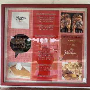 I ordered a 3 meat plate with 2 sides. The full meal was 2 slices tri-tip, 2 pork ribs, 2 dark meat chicken, corn bread and a drink for $21. Not a bad deal for bbq. All the meat was tender and juicy. I'm not huge on sweets beans or beans in general but I'll take seconds on their baked beans. Not the best bbq I've had but I'll eat here over a few bbq chain restaurants.