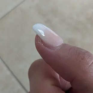 Streaky uneven color. Toe nails not properly shaped, barely even cleaned out, my feet were barely even scrubbed.