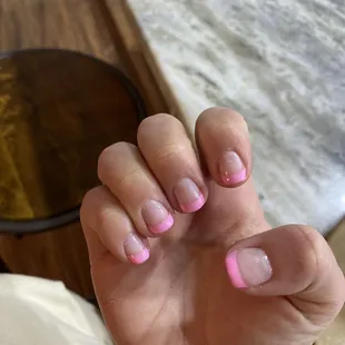 OMG, I love Pinky Nails and Spa! I have been a customer of theirs for about 4 months now and have not once been disappointed. I only get gel manicures on my real nails, and the gel usually lasts for 3 weeks, sometimes 4 depending on how much i am dipping my hands in water (washing the dishes/car, cleaning, swimming, etc..). Tina is my manicurist and she is so sweet, everyone in the shop is friendly and kind. The price of a manicure is not bad, considering the side of town in which they are located, initially i was expecting their prices to be high, but no not bad. The shop is very clean inside and hygienic practices are seen here. Schedule an appointment ahead of time, so you do not have to wait.