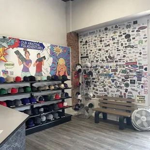 Hat selections for embroidery at Plain Insane Graphix, next to our custom wall decal