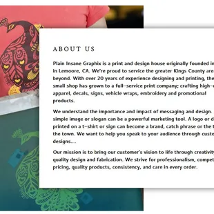 We have used Plain Insane Graphic & Design for a few items and WOW. The help refining our logo and the end results on shirts and a tablecloth was amazing! The tablecloth is such good quality and just beautiful! I also have a glittery hat and a water bottle with our high school logo, have received so many compliments on the items will def be ordering again!