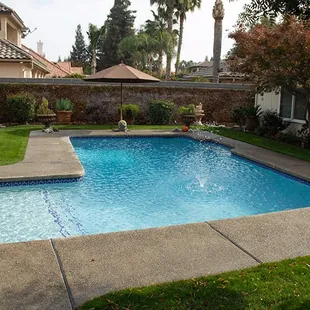 a pool in a residential backyard