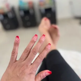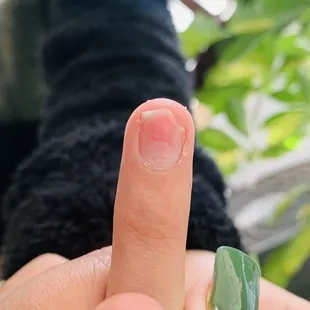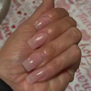 I asked for round, the shape is weird and lopsided. I also had several nails with nicks. I noticed them, then when he filed my nails, I'm pretty sure he noticed it as well. The guy with glasses is really rough. I also hate when they try to do both hands on one side because you're stretching your arm across your body. I tried to make it apparent that I was uncomfortable. Usually, when they start to paint the nails, they ask you u like the color they did not. It's unfortunate because I always loved going there before the new management happened. Vibe is still clean.