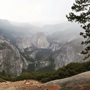 Sentinel Dome Trail (Yosemite National Park / California)Sentinel Dome Trail is an easy 2.2 mile out & back trail that leads to great views of El Capitan and Half Dome. There is a small parking area right off Glacier Point Road and can be found by using the directions on AllTrails or on Yelp. The trail is easy to follow. When in doubt, follow the signs. The elevation gain is a little over 450 feet and takes about 30 minutes to the top of the dome at a slow walking pace. The dome itself is grippy, which is a huge plus when climbing up it. Besides El Cap and Half Dome, views also include Nevada Falls, Cloud Rest, Taft Point, and the High Sierras. On most days, I bet these views are amazing. But we were here during the California fires and the smoke covered most of our view. By the way, El Capitan should be viewed from ground level and close-up any way. Sentinel Dome Trail is a nice, quick, and a good warm-up for the Nevada Falls Trail.