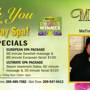 Call or text for more information. Skin Time: (209)947-9413 Me Time: (209)489-7582