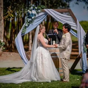 My sister recently got married at Starlight Grove and the whole experience was nothing short of amazing. Since she opted to not hire a coordinator, I did a lot of the hands on stuff, myself. We first spoke to Bill, the original owner, who gave us a tour of the property and the rules/expectations last year in the midst of a pandemic nevertheless. My sister put a deposit and signed the contract! We met the new owners who were very sweet, accommodating, and made themselves available for any questions we had. They honored our original requests without any hesitancy and super easy to communicate with. The property: Beautiful matured eucalyptus trees, a central gazebo, and a large concrete area for dancing. There's separate bride & groom quarters as well as separate bathrooms (don't worry, there were signs to direct guests). There's so much grass and space to be as creative as you want. In addition, the property also has a few of their own wedding arches, wine barrels, and other decor available for you to use at your discretion. This place is perfect for the DIY bride! What is also a big plus is that there are workers the day of that will guide your guests to parking spots that are also located on the property. Please note that although this is an event space, it is also located near other residential homes so therefore the allotted time ends at 10pm. That was made very clear in the beginning along with other fine print on the contract. Our DJ was cognizant and kept the party people partying until his last call announcement. Which reminds me, I need to write a review on him! Be creative! This place is perfect for outdoor events.