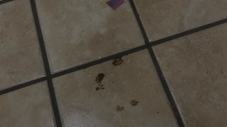 Feces on the bathroom floor.