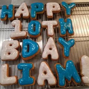 Get your letter donuts here!! Ordered with Susan and she walked me through the process so well! So happy to have ordered with this place! Went in to pick up my order and their customer service was so sweet. It's a great place to get a yummy donut and a smile from! Definitely makes your day better and this is a quality place overall :)