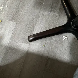 Trash/debris/crumbs/litter on floor and benches