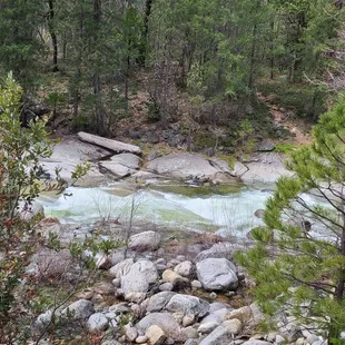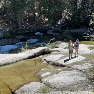 This place is magical! Imagine a short hike that takes you into an area with wildflowers, beautiful pines and a running river. Imagine crossing a swinging bridge, walking along the trail, climbing down some rocks and swimming in a crystal clear river. If you can see it in your minds eye, then go experience this area, it's gorgeous!Remember your sunscreen, lots of water and towels. The granite rocks can be slippery when wet so be careful close to the water. And enjoy, this is the place dreams are made of!
