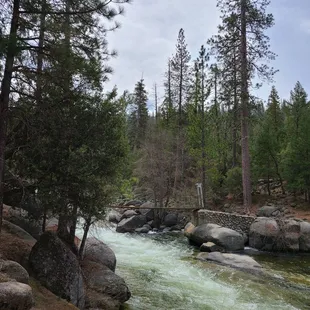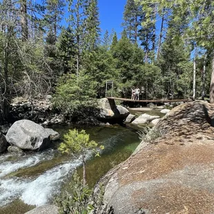 Superb little picnic and frolic spot near Wawona - ideal for young families. Visited a couple of times when we were staying at the Redwoods (vacation rental) nearby. The walk from the parking lot is an easy half-mile through the trees, and then you have to make your way to the swinging bridge and down to the water and the rocks. Walking across the swinging bridge (which we did one at a time) was my favorite experience, followed by swimming in the water below. The early am visit was much more pleasant, later in the day it gets hot and there isn't much shade down near the water. We all had a blast, and will surely return!