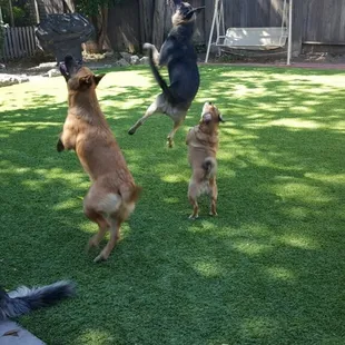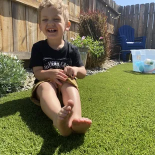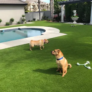 So happy with our new backyard! Our yard was full of stickers and now it's beautiful. Only took two days to install. Our dog had allergies, was put on medication to help with the itching. Since the new lawn was installed there is no more itching which means no more medication for our fur baby. Worth every penny and we are so happy with the results. Thank you SYNLawn!