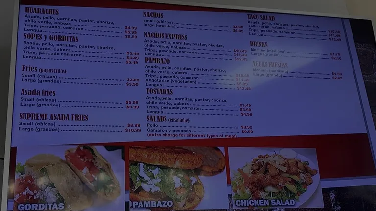 a menu for tacos express