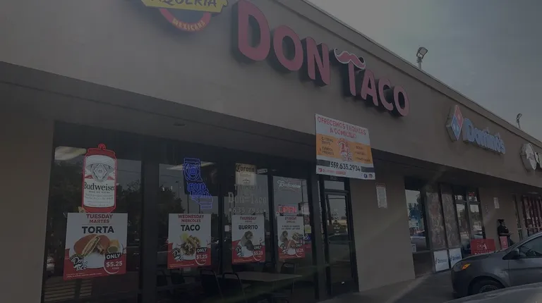 I think the Chile Verde wet burrito is amazing . The super tacos are good as well. Online ordering available at dontacovisalia.com. They could change the indoor experience if they wanted more customers in house. TV's are nice and colorful interior. Rough area at Houston and Ben Maddox. But we'll worth the risk!!