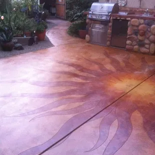an outdoor kitchen with an island