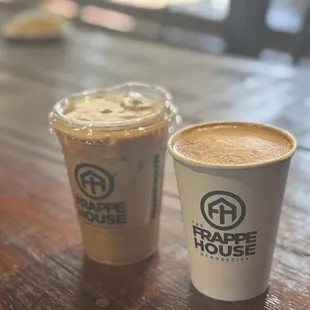 Honey cinnamon latte and iced vanilla latte