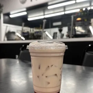 A new coffee place that also services Italian sodas and Thrifty ice cream. The owner told us they will soon be offering pastries as well. The same owner as The Pickled Deli added a coffee place inside the Peacock Market where The Mug originally had opened. The usual coffees plus a few interesting Valentine's specials were on their menu. I ordered a mocha. My friends ordered a pistachio latte and a special strawberry horchata iced coffee on the Valentine's menu. We asked for less sweet, and the owner graciously offered to remake it if it happened to be too sweet. There were plenty of spots open to sit, as it was still morning time. I imagine at lunchtime it might get slightly busier with the 2 lunch restaurants there as well. The owner stopped by to make sure we were all happy with our drinks. Go check them out and give them some support!