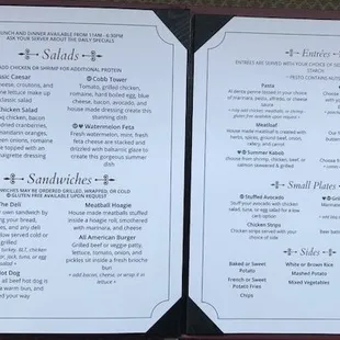 Our Daily Specials change each day. Our regular menu, including breakfast, salads, sandwiches, entrees, sides, and more, changes seasonally.