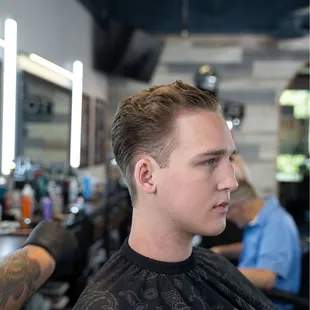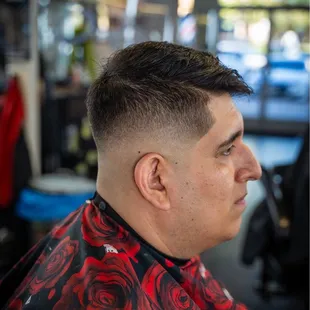 Love the location! The shop is pretty large, 10 chairs. Everyone's great, but the best is Gerardo! Took a risk and change barbers for my son a year ago, it's safe to say, we made a safe and good choice! See all the pics if you don't believe me!