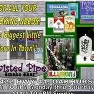 By far the worst customer service I have ever endured. The man that claims to be the "owner" (so obviously not the owner by his actions) greets you with "Yo" as if he is some Indian gangster. The place is covered in dust. There's a lot of merchandise being displayed from the floor, which is also covered in dust/dirt. Pretty much anything you buy from this store will be dirty in one way or another. I can not even describe the smell of this establishment. It closely resembles burning cotton candy. Be prepared to walk into a cloud of "E-Cig" smoke. Evidently it's also a Vape Lounge? Always kids hanging out puffing on E-Cigs. To put it plainly I was treated like crap and I will NEVER go back to Twisted Pipe or Cigarette's For Less. You would be wise to do the same.