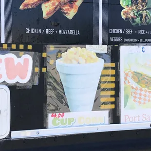 a menu on the side of a food truck