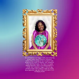 This wonderful place is so beautifully decorated. It's clean and smells nice. The owner is fantastic. She takes her time to answer your questions, make sure you are comfortable and you get exactly what you want. Very professional and knowledgeable about her business. Today I had the POWER SOAK (foot detox) and Crown Me Clean. I sat there and relaxed, the music was nice and the temp was perfect. If you haven't pampered your va jay jay yet please do. She will thank you for it later. It's safe to do. You will not regret the visit. Bring a few friends with you to experience something new and cool.