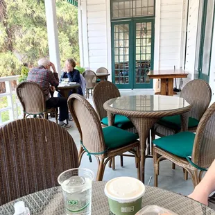 *OFF-SEASON REVIEW FOR THE RESTAURANT*. This is really hard to write for such a beautiful and historic hotel with such a rich history, but I'm writing this to inform people about our off-season experience so you know exactly what to expect. My friends and I stopped by at the beginning of October for breakfast/brunch after the owner of a local winery was raving about it as a destination for brunch and to people watch. So we were incredibly excited to check it out for ourselves! When we arrived, we were informed by the front desk person that it was just to-go food only but could sit on their picturesque patio. Ok not bad... We then made our way to speak to the only person working front of house at the restaurant where he was kind enough to give us recommendations on the food. We really appreciated his honesty, as he let us know that he didn't recommend the chicken but loved the wraps, chili, and soup there. So we took his advice and ordered those three and got ourselves coffee (he gives you cups and you have to fill up the coffee yourself). I will start by saying that the freshly made vegan chili and soup were pretty darn good. The wraps on the other hand were incredibly disappointing. Not only were they not made fresh (they came in plastic containers just taken out of the fridge with a sticker that said they were made two days ago), but they were just not good and way overpriced. I just kept thinking that Trader Joe's has better wraps :(. We were absolutely starving by the time we got there and it was just a really sad situation for the four of us. I wholeheartedly believe that it's a completely different experience during the busy season when they have table service. I would love to visit again during that time.