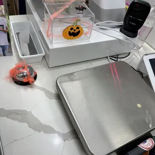 It's in a food court/ gas station. You get the frozen yogurt you want. Then you go to the toppings behind and put on whatever you would like. They have a lot of really tasty toppings! Got what each wanted! Then went to check out! Scanned my cell to get the points and the worker was really nice! Great service and delicious frozen yogurts with great toppings! Highly recommended!