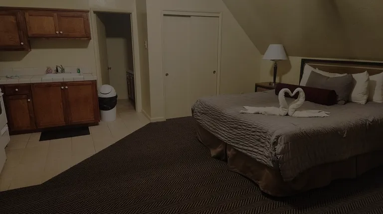We were met with adorable towel swans when we walked into the room. Check out the picture. What a warm welcome and a cute idea!The best thing about Yosemite Redbud Lodge is that it is so close to Yosemite National Park and the Tioga Pass area. It was about a 10 minute drive to the park gate. We left the Inn around 7:30 am to avoid the summer traffic. Also, there is a gas station on the way. Just in case you have to fill up before you go to the park.To check in and receive your keys, you have to go two miles up the road to the Cedar Lodge Inn. At this location, they have a pool, a small store, and a restaurant. This is accessible to all Red Bud guests.Our room was very large and had a mini kitchenette with a full-size refrigerator, a gas stove, and a microwave. It didn't have a dishwasher or central air. It did have an AC window unit.It had nice thick towels, full bottles of Suave body wash, shampoo, and conditioner.One random thing some forks, knives, and spoons were left on the bedside table. I'm not sure what that was about.