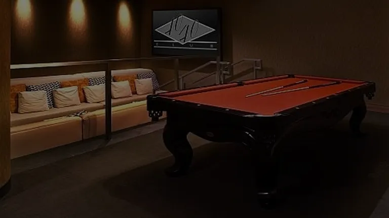 a pool table in the middle of the room