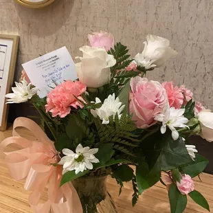 Walked in to get some flowers for a friend I choose white roses sunflowers and some baby's breath didn't get the name of the guy who helped me but was super nice and quick the flowers were so fresh and my friend loved them