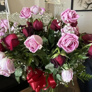 Beautiful flowers I got on Valentine's Day! My boyfriend said he ordered them on the 31st and he said to have it delivered on the 14th and they sure did. I was surprised for sure. Loved it!
