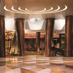 Didn't stay here this time around, but gambled a little and walked around a snapped a few shots for the Yelp. The vibe is conservatively modern with several shops and restaurants that seem to keep with the theme. I've dined at several of their restaurants and really haven't had a negative experience so far. Javier's is a favorite. I love walking through the check-in area as it feels bright and airy with wall to ceiling windows and an expansive lobby/lounge area to hang out. Generally, parking is complimentary as long as you are a MGM rewards member of Pearl, Gold, Platinum, or NOIR. Just insert your MGM rewards card at the gate.