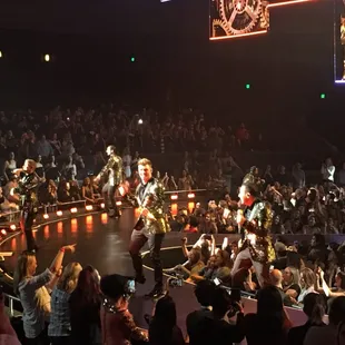 This was a great show. Highly entertaining. The background dancers did an excellent job keeping you entertained while the group did their costume/break changes. There was primarily a younger crowd (20's) but there were us older folk there too which made not only the show entertaining but the crowd too. Expect to stand while you watch as the energy is high and the majority of people in the audience is dancing and singing along. Whether you are familiar with the music or not, you will more than likely enjoy the venue.We sat in section 205, row F #1-3. Towards the later half of the show, the group comes out into middle of the audience (the walkway before row A in the section we were sitting in (as well as the section to the left and right). It was great and exciting.