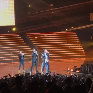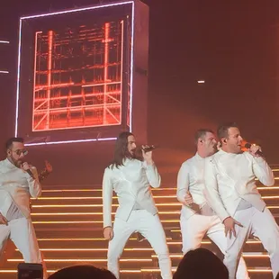 Our trip to Vegas was planned around hockey and the Backstreet Boys. I've seen the Backstreet Boys live in concert several times before when they visited my home city but of course, seeing them a few times is never enough and I still needed to come here and see them perform live, yet again! I've been a fan since I was 10? 12? Who knows and who really remembers?! All I know is that I used to oogle at their posters way back in the 90s while listening to their music in my personal CD player over and over until I scratch the CD and had to beg my parents to purchase a new one. If you are reading this because you're planning on seeing them and are curious what fans thought of their show, then you can surely relate and I need not say anymore!The show was quite exhilarating and the boys (men) has still "got it going on" for sure. The stage set was pretty minimalistic as far as the decor went with some blue lights all over and smaller screens on each side of the stage. The lighting and effects during the show, however, were great and they sounded like they always have when I've heard them perform live. I ended up with seats that were a great distance from the stage and more in the middle. My biggest advice though when purchasing ticket(s) is to really pay close attention to the seating chart. If you don't have that luxury, however, the theater is still not that big that you really won't miss out on anything. Additionally, the BSBs do go out into the crowd for a song. Nick Carter happened to be the one in my section (within arms reach but I froze and freaked out; stood there like a bump on a log instead) and he is, of course, my favorite so that definitely made my evening! The performance was everything I expected it to be. It was great, they sounded wonderful and I had the time of my life!Yes, they still dance. There were moments (wardrobe change I am assuming) when they would have a slight intermission but they didn't last too long. They had some slide shows with photos of the younger BSB and their tours, goofing off, clips, etc. It was fun being able to see them even though I've seen most of them from their documentary DVDs. Oops... did I just say I own their DVD documentaries, too? Well, as you may have already assumed in the beginning of this review... I am a huge fan. May not be larger than life but pretty darn big!The theater where they perform has a nice lobby area where you can purchase your adult beverage (or not) and merchandise. Like everything else Vegas-related or concert-related, they are quite overpriced but who cares, right?! You are here to see the BSB and you are going to have a great time! Regrets are for later!