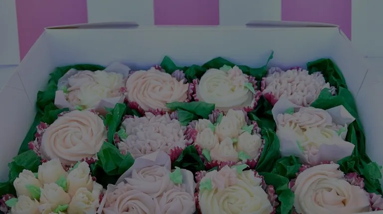 pink cupcakes in a basket