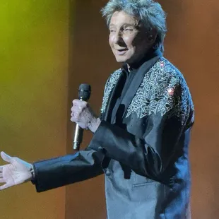 WOW! I am a straight male, and yet I have always been a big fan of Barry's music. Some of my friends tease me about it, but I don't care The guy just writes and sings great music! I've seen him several times before, and when I found he was going to be performing in Vegas when I was there, there was no question. I got my show ticket through Vegas.com, and for pretty much the same seat in the same section, I saved a good amount of money over going through Ticketmaster. What can I say? The man is. *80* years, old, and "he's still got it!" he's still got the charm, he's still got the energy, and most importantly of all, he's still got the pipes! it was almost an hour and a half show of his greatest hits. He talked about how he got started, he even played a piece of the very first record he recorded as a child, at one of those booths in Times Square where you can make your own record. His grandfather took him down there. His song "this one's for you" is a tribute to his grandfather. The show was a retrospective of his entire career . It finished with a rousing "Copacabana", which the audience sang right along with him. At the very end, a platform came down onto the stage, and he walked up on the platform, greeting those in the balcony, and then looking over the rest of the audience.Out of all of the times that I've seen him, to me, I think probably this is the best show he's ever done. I don't know if I will ever see him again, but if this is it, this was the way to end it. Thank you, Barry, for a wonderful career, and an awesome evening!