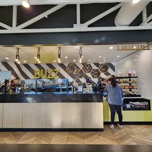I absolutely loved my experience at Better Buzz Coffee! Their clever "Let's Get Buzzed" theme is a playful twist, turning a phrase typically associated with alcohol into a fun coffee-centric vibe. The bee-themed decor and attractive yellow accents create such an inviting atmosphere.From the moment we walked in, we were acknowledged with friendly greetings from the staff, which is something I always look for since I'm in the customer service industry. It's the small gestures that make a big difference, and they nailed it. Not only was everyone welcoming, but the service was also quick--no long waits, just great efficiency!Inside, the ambiance was fantastic--uplifting music played at the perfect volume, setting a happy and energetic mood. I also appreciated the convenience of having water on tap, allowing customers to grab a drink anytime without needing to ask. The overall vibe genuinely made me feel "buzzed" in the best way possible!We visited on Valentine's Day, and they handed out adorable "Be Mine" stickers, which was such a cute and thoughtful gesture. It made the experience feel even more special and showed that they pay attention to little details.I ordered the Nitro Cold Brew with sugar-free caramel, looking for a low-calorie option. It had the right amount of foam on top and definitely did its job--I felt productive and energized. The sugar-free caramel didn't quite taste like regular caramel, but that's expected with sugar-free options. I got the 16 oz, and it was just the right amount.It was our first visit, and they gave us a QR code to download their app, which came with a free drink for next time--a nice little perk! This spot is definitely Instagram-worthy and a great place to catch up with friends.My boyfriend ordered the Honey Latte, half sweet, and absolutely loved it. He regretted not getting a larger size because it was so good! The option to customize the sweetness level is a great touch. He rated the entire experience a solid 10/10, from the drink to the ambiance.Overall, Better Buzz Coffee nailed it with their fun theme, welcoming atmosphere, quick service, thoughtful touches, and delicious drinks. We'll definitely be back for more!