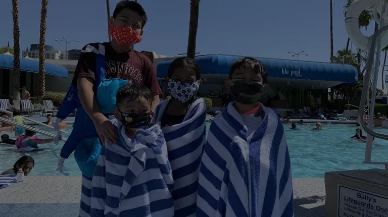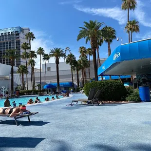 If you're going to Vegas with kids, this pool is perfect for families. This pool has a deep end and a shallow end. They divide the depth by buoys. The shallow end is 3ft-5ft and the edges of the pool are lined with benches. So it's perfect for kids to sit and chill when they're tired of swimming, but still allows them to keep their body submerge in the water. Upon entering we just had to show our hotel key and they asked how many towels we needed. There was a crowd but people were still considerate in trying to distance, but it's a pool so what can you do. There's still a lot of lounge chairs but they ask that you not move the furniture We prepared ourselves by bringing our kids floaties and their own goggles, but they do have equipment for rent if needed. We had a pleasant visit and will definitely come back again.