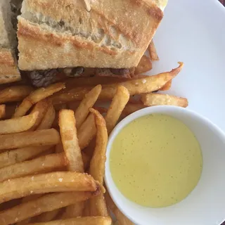 Chicken or steak, mushrooms, grilled onions, JC Signature sauce.