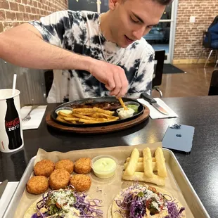 "Randomly came across this place here on yelp. We visited this place on a Wednesday, which wasn't busy at all, which I like. Lol The colors and decorative of this place was definitely giving Filipino, Latin, American vibes. I ordered the lamb sandwich. The flavors were on point, the meat was juicy, and the fries were sooooo good, crispy and soft at the same time. My girlfriend ordered the Ube French Toast, I had to get a bite. Lol You can taste the ube, not over powering though, just enough. Savory, sweet and definitely filling. Also try the fresh watermelon juice, it's refreshing!!"