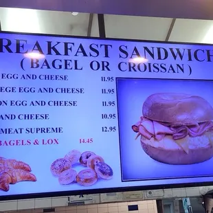 a breakfast sandwich displayed on a large screen