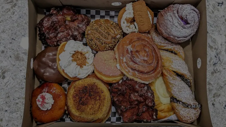Almond Croissant, banana cream pie, rainbow filled, chocolate old fashioned Cinnamon Toast Crunch filled, creme brûlée sticky bun