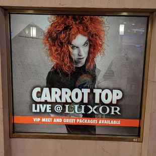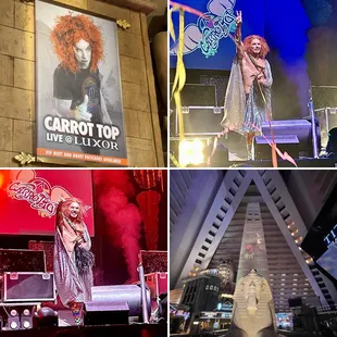Every once in awhile, I drink a little bit of haterade and get a little judgey. Normally I'm an angel, but I must admit, I assumed who Carrot Top was based on quips and jokes of others. I went to his show not expecting much and actually LOVED it. He's so personable, good to his fans, was really funny and his standup was topical and good! I thought he was all props, but nope! The man got jokes, legit. And he's self deprecating, which as someone who has the same sense of humor, I fully appreciate.You'll find the Ging within the Luxor at their Atrium Showroom in the center of the hotel, on the elevated second floor. Tickets are kind of pricey but if you do a little searching, you'll find a good deal. We were in the first row and had an amazing view. All staff at the Atrium was great!I would venture to say, his show is so good, I would see it again. I'm in Vegas every few months and I can see myself going again. That's how surprisingly good Carrot Top is! Highly recommended if you are into raunchy stand up!Bonus points, he told me I was cute. My new favorite comedian, lol!