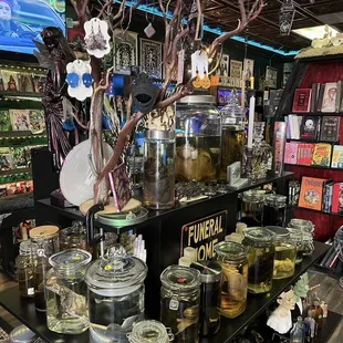 i love this oddity shop so much. i was in LV earlier this year when i went to sick new world and this spot was a gem, i had to stop by. i can't wait to come back next year!! this shop has a HUGE variety of stuff i was on overload being in there. taxidermy , wet specimen, diaphonized specimen, pinned insects, bones, and so much other oddities and knick knacks. the shop also had a deal going on if you showed your SNW wristband you would get a discount on your purchase which i thought was so cool. everything was fairly priced as well, i ended up purchasing a wet specimen of a baby chick. staff was very friendly i want to say it was the owners who were in at the time that we were there, they were so nice! definitely check out cemetery pulp if you're in the area!