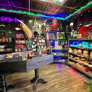 Went to this shop to watch my granddaughter's band play. This place isn't my cup of tea, but I gotta say, I did see some unique items. Odd, bizarre & some things just completely creepy, the store lived up to their sign outside that says "Welcome to the Creepshow"Books, comics, animal skulls & skeletons, jars of embalmed rodents & other small animals along with two live snakes. No matter where you look, you're gonna see something that might repulse you or make you say, "That's wonderful, I gotta have it!" Stop in & check it out, but keep an eye on your kids. Unattended children will be taught how to taxidermy the dog!
