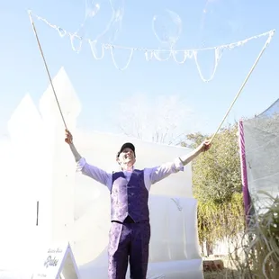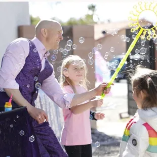 I cannot recommend Kirk Marsh Circus of Bubbles more!!! He was amazing, flexible, entertaining, unique, great with children, and managed to make amazing bubbles in 24 mph wind gusts for our outdoor party!! 100% fabulous!!!